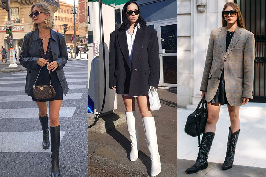 除了要注意外套選色之外,靴子款式也要留意!這個打扮的亮點在於突出一雙修長美腿,所以靴子剪裁要以貼身為主。假如對雙腳線條沒太大信心,也可以多穿一雙透膚的黑色絲襪,營造細腿效果。再配一個具設計感的手袋及太陽眼鏡,平凡素人也能一秒變身成為時尚超模!