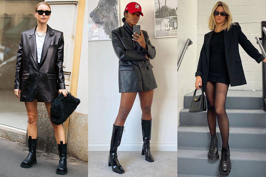 經過 Hailey Bieber 的示範之後,不少 fashionista 也立即 follow 她的造型!整個 IG #ootd 相關的帖文都被這種 over-sized 西裝配長靴的打扮霸屏。假如你也想挑戰這個簡易時尚打扮,就必須注意 over-sized 西裝最好挑選黑色、灰色的設計,加大碼的西裝外套輪廓寬大,腰線欠奉,沒有如 Hailey 般的纖瘦身形,就要靠有顯瘦作用的深色系打扮修飾。