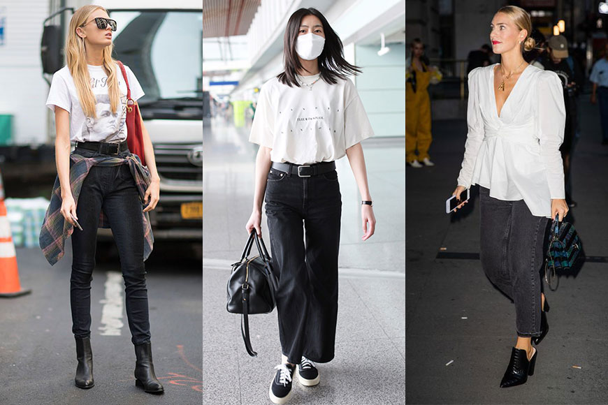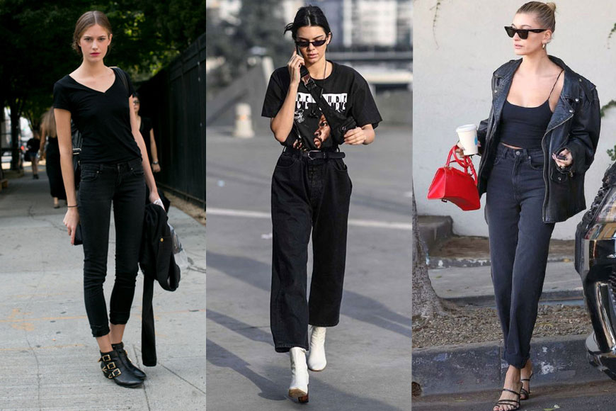 當然,穿黑色牛仔褲時,亦可以從由頭到腳一身黑色服飾作配襯,塑造出型格味道。款式方面,bootcut、貼腳、喇叭褲剪裁,膝蓋破洞細節,都是近期大熱的款式。