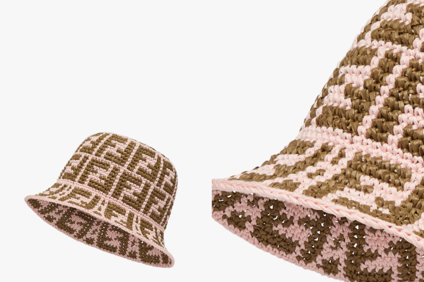 嫌普通淨色草帽太過單調? Fendi 漁夫帽利用綠色和粉紅色調編織出FF主題圖案,搭眼悅目卻不會過於高調,輕鬆為造型增加時尚亮點。