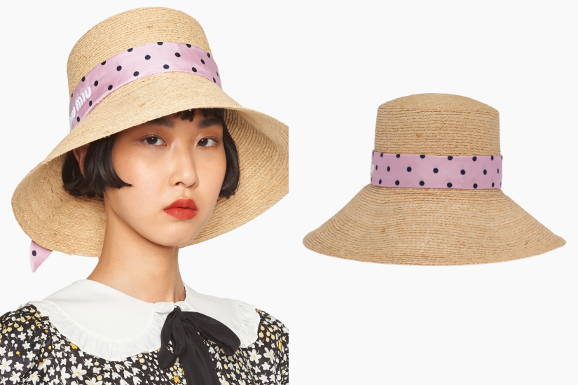 Miu Miu 草帽以鮮艷俏皮的粉紅色圓點頭帶點綴,洋溢夏日風情的同時,又充滿活潑少女味。闊邊設計更有小顏,修飾面型的效果。