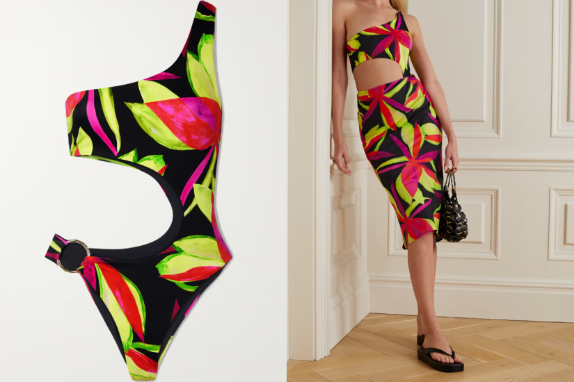 LOUISA BALLOU Half Moon one-shoulder cutout printed recycled swimsuit $2,880 (net-a-porter)