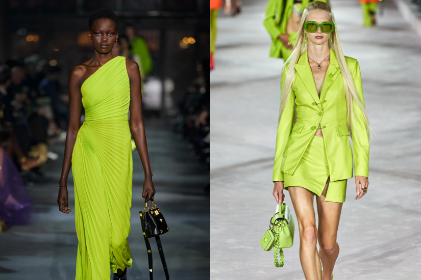 各大時裝品牌的 2022 春夏系列,如 Versace、Valentino、Stella McCartney 、Erdem 等都可以找到其蹤影,由俐落型格的西裝造型,到華麗的珠片禮服設計,都展現出 Lime Green 的色彩魅力。