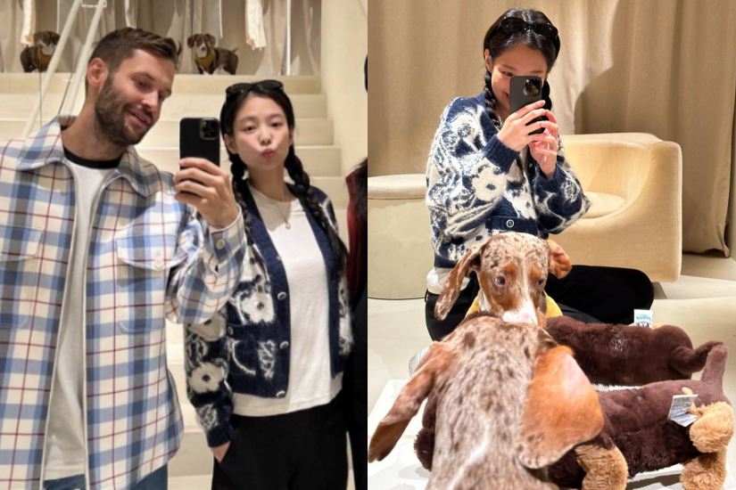 BLACKPINK Jennie 就以花卉圖案針織外套,搭配白 tee 及黑色褲,加上孖辮髮型,簡單好看,更顯得少女味十足!