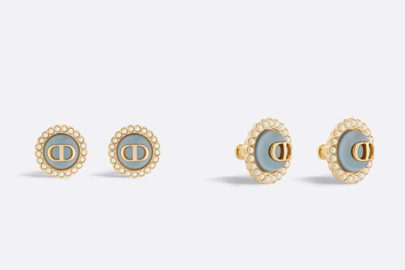 這款 Petit CD Baroque 耳釘展現典雅及色彩繽紛的風格。以金色飾面金屬精製而成,樹脂珍珠巧妙地圍繞奶白色凸圓形切割玻璃,配以 CD 標誌,令造型更添魅力。