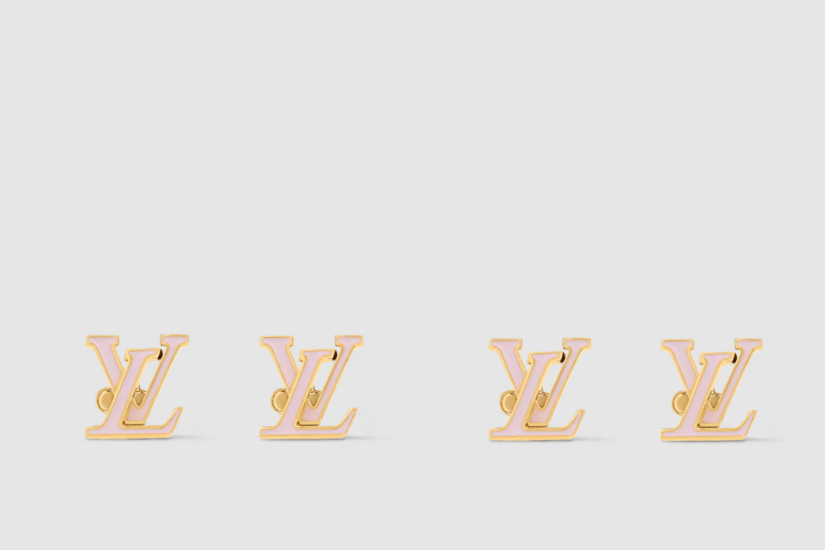 這 LV Iconic 耳環在 採用閃亮的粉紅色琺瑯製作。Louis Vuitton 經典的重疊字母鑲嵌在金色飾面黃銅上,設計散發柔美氣息,以標誌元素襯托面部。非常適合日常佩戴。