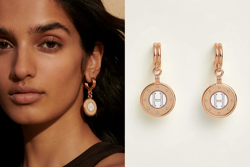 Hermes 的魅力不用多解釋,品牌的手袋門檻相對較高,不妨以耳環作為首次入手 Hermes 的單品。這款垂墜耳環,以「Blason」印花琺瑯為設計,飾有代表品牌的「H」,加上份量不少,為造型增添焦點。