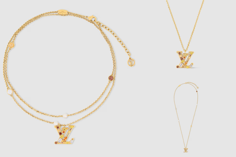 Louis Vuitton 這款 Lady LV 項鏈採用金色金屬雙項鏈設計,綴有閃亮水晶,雙細鏈帶飾有 Monogram 花卉圖案及 LV 標誌吊飾,可以隨心情與造型,一圈或雙圈配戴,提高更靈活的配戴性;項鏈另配襯五顆水晶,為這款奢華精緻的項鏈增添閃爍魅力。