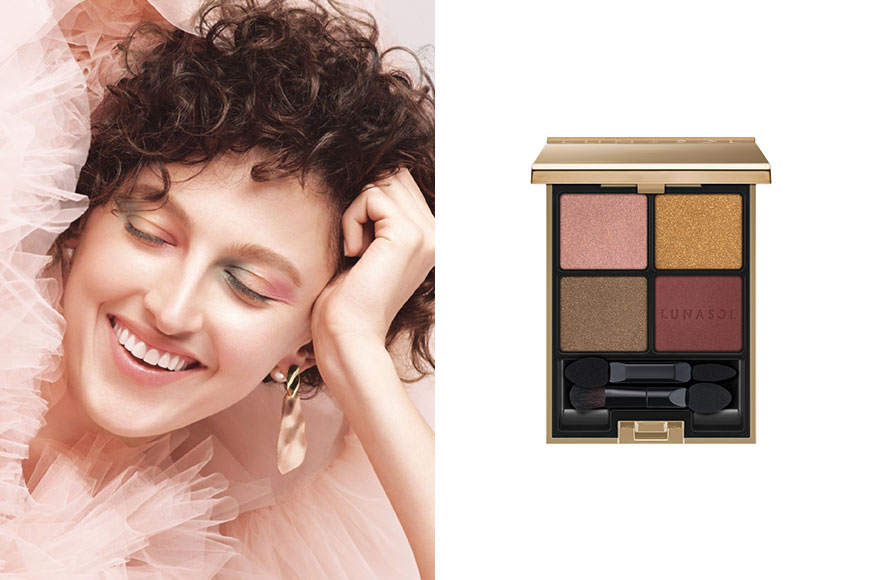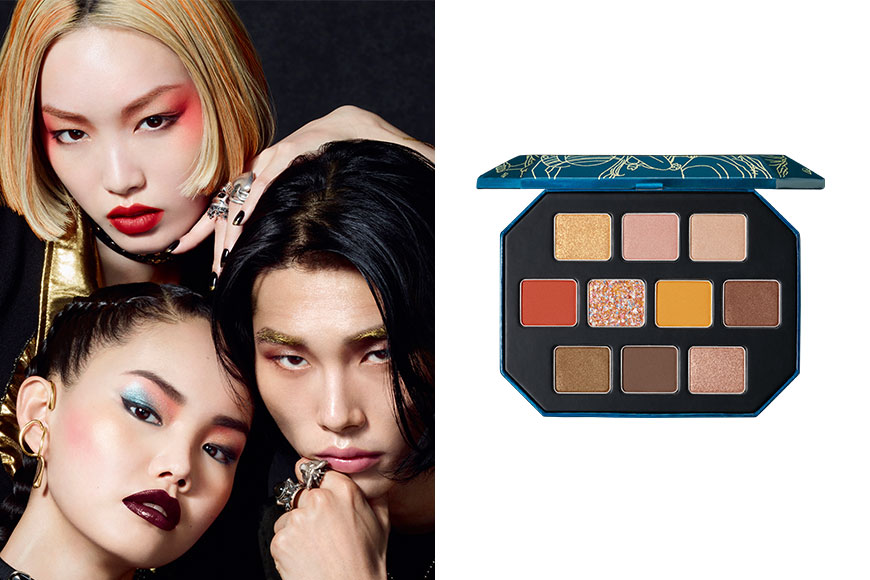 橙色、黃色是日落彩妝的重點色調,選擇一盒配備這兩個顏色的眼影妝組合,以橙色作打底色,再補上黃色加添漸層效果,最後以閃爍感金色點綴眼頭位置,簡易完成一個溫暖感又高調搶眼的眼妝!