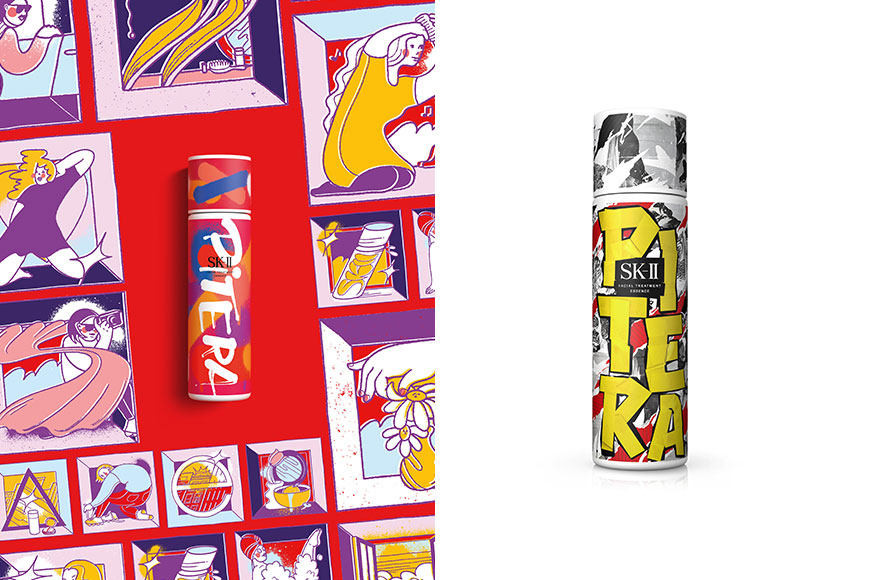 同樣換上藝術風新裝,SK-II 走的是大膽前衛的都市街頭藝術路線,為經典的半透明磨砂包裝的神仙水帶來前所未有的年輕感。凡購買街頭藝術限量版神仙水,品牌會配贈一條限量版節日絲巾 ,可以用作贈禮包裝,又能重複使用成為時尚配飾。
