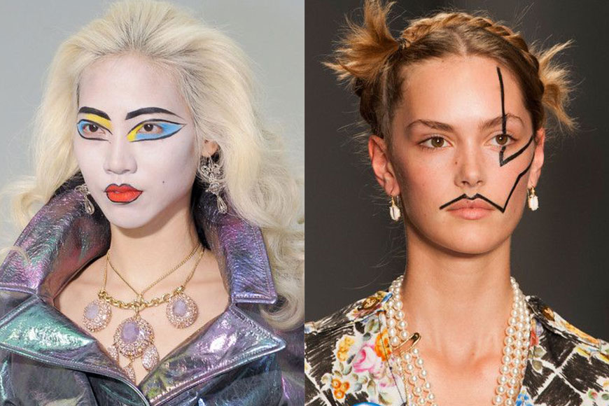 無論目的如何,都讓我們瞭解到創意彩妝的不同可能性,利用色塊及條線去表達自我。化妝師 Amy Lee 就用上紅、黃、藍三原色為主題,把模特兒面龐化為畫布,創作出普普藝術風格的彩妝。想挑戰這類彩妝,在計劃好主題後,不妨把選色收窄,盡可能使用飽和度及冷暖調相近的顏色,效果會較統一,減少衝突感。