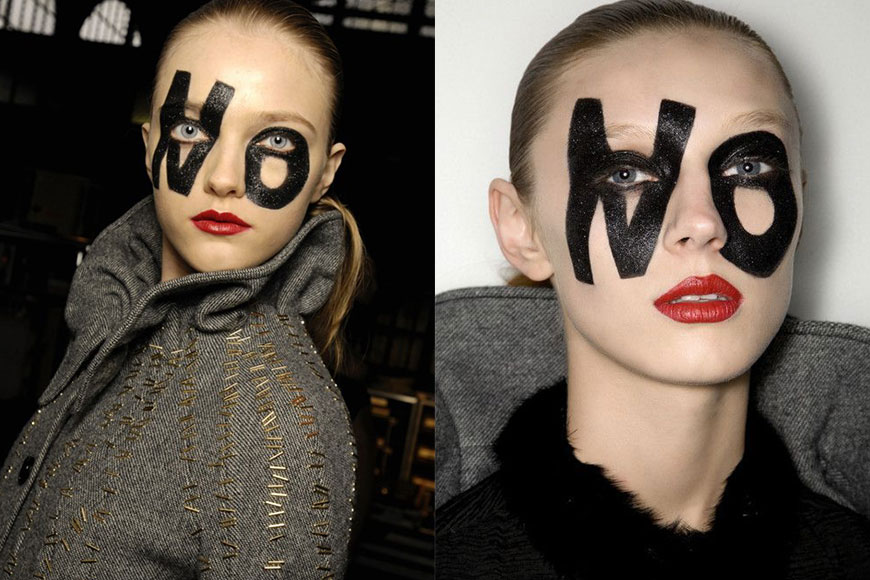 雖然 Anti-Surveillance Makeup 是近年新興熱潮,不過在過去時裝天橋上,也曾有不少設計師透過創意妝容。Vivienne Westwood 2013 年秋冬及 2015 年春夏發布會曾經出現過類似的「易容級」妝容,而 Viktor & Rolf 2008 年秋冬發布會更直接在模特兒面孔上 “NO” 字樣以呈現對現實的不滿。