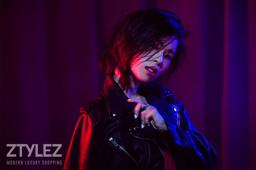Sophy身穿Diane Von Furstenberg的紅色鍋釘牛仔連身裙配上Diesel黑色皮褸和Christian Louboutin的塗鴉設計手袋,整體造型有著Debbie Harry一種反叛,我行我素的形格,正正就是Sophy和她的音樂最引人入勝的地方。
