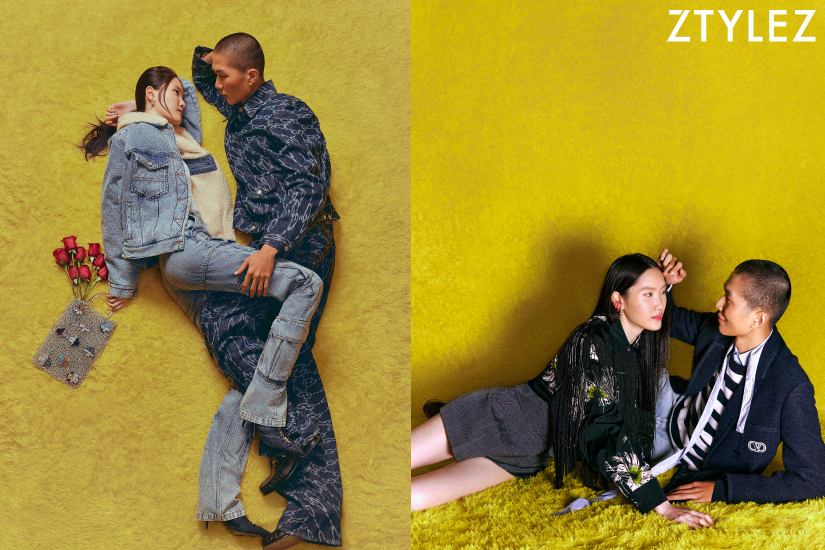 (Left) On Liu Chang: Denim Jacket, Jeans all from Givenchy, Heels from Jimmy Choo, Wirebag from Anteprima