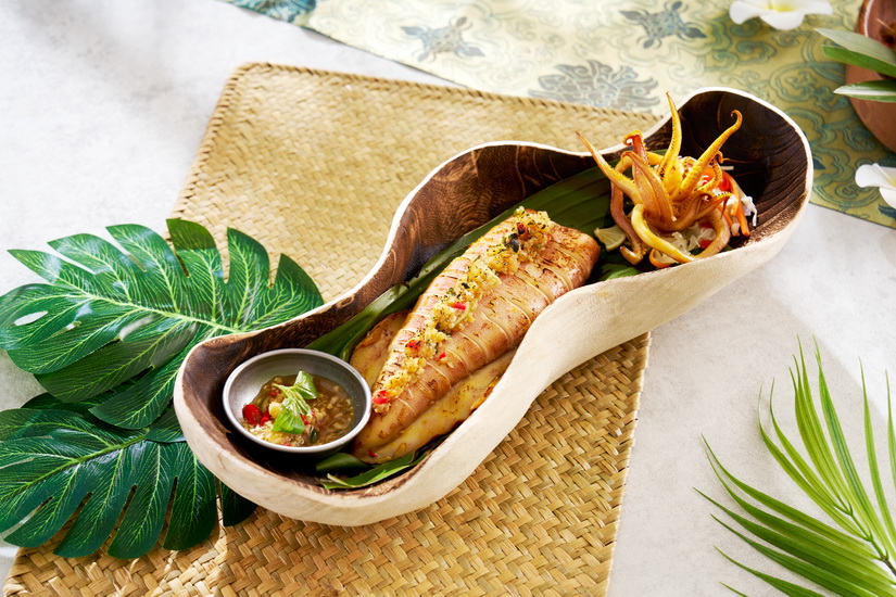 尖沙咀摩登泰菜Mue Mue 推出全新「海陸空」主餐牌,將來自海洋、陸地和空中的精選食材重新演繹,為食客帶來驚喜的泰式風味。焦點推介包括三種不同烹調方式的澳洲龍蝦,肉質鮮甜彈牙,包括惹味的泰式香蒜冬陰功炒龍蝦、香濃順滑的泰皇咖喱龍蝦及帶有獨特香草氣息的泰式金不換香茅炒龍蝦,滿足對海鮮一絲不苟的講究。來自越南的珍寶火箭魷魚同樣不容錯過,魷魚經黃薑粉和香料醃製後炭燒,口感爽彈,搭配自家製泰式醬汁,酸辣開胃。