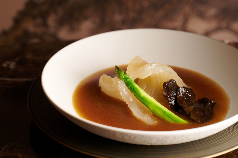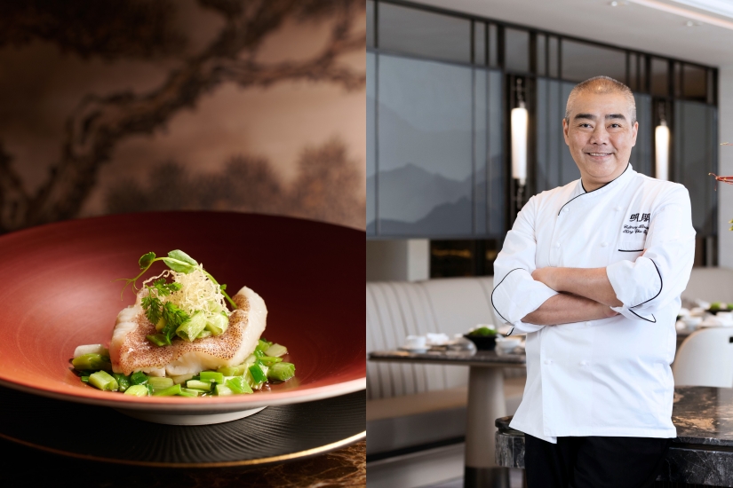 此外,張師傅以潮汕老菜脯入饌,炮製「陳年老菜脯燴花膠」,以鮑汁燴煮上等花膠,佐以三十年老菜脯,帶來獨特鹹鮮風味。而「雞油蔥香岩鹽蒸星斑柳」則展示曾師傅對火候與調味的精準掌控,選用澳洲星斑魚柳,以岩鹽與雞油醃製,呈現鮮嫩細膩的口感。