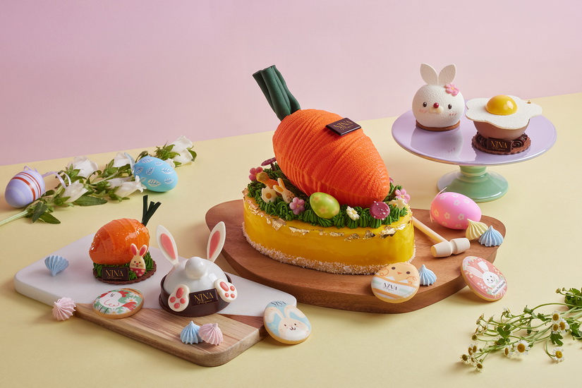 「奇趣荷包蛋」外層以白朱古力仿煎蛋造型,內層是牛奶朱古力蛋糕及香濃柚子慕絲,視覺與味覺同樣驚喜。另有「尋找俏皮兔」的熱情果椰子慕絲蛋糕及「繽紛紅蘿蔔」伯爵茶香橙蛋糕,融合果香與茶香層次,打造五款節日代表甜點。所有產品可於 Nina Boutique 網店訂購,早鳥優惠高達68折,甜點由港幣$25起,組合套裝亦設優惠價。