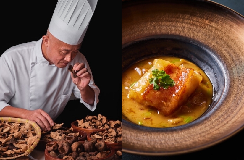 順德黃皮老虎斑餃則承載着梁師傅的家鄉記憶,以黃皮老虎斑與蝦肉打膠,加上芹菜、甘荀粒及順德豆豉、蒜與薑提味,魚鮮與豆豉鹹香相互交織,滋味醇厚。主菜方面,花膠撈麵選用厚身花膠以濃雞湯慢煨至軟滑,混合薑蔥醬油與粗麵拌勻,味道濃郁,口感彈牙。