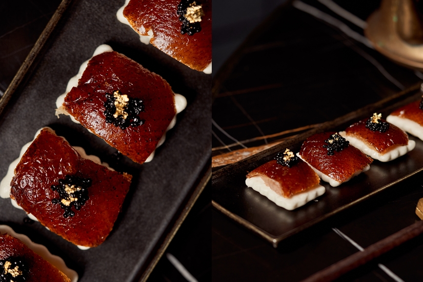 今次升級菜單的主角之一,是重新演繹的招牌之作 —「42天飼養北京片皮鴨(蘋果木燒)配特級黑魚子醬」。 以卅二公館招牌的蘋果木掛爐片皮鴨為基礎,加入更奢華的升級版本。師傅嚴選整隻片皮鴨中最理想的八塊部位 — 皮脆、油香、肉嫩的程度均達黃金比例 — 每件鴨肉以手工包盛載,加上魚子醬點綴,打造出一口即食的極致享受,客人無需動手準備,方便又優雅。餘下鴨肉則以傳統方式上桌,配以自家製薄餅及配料,延續經典風味。