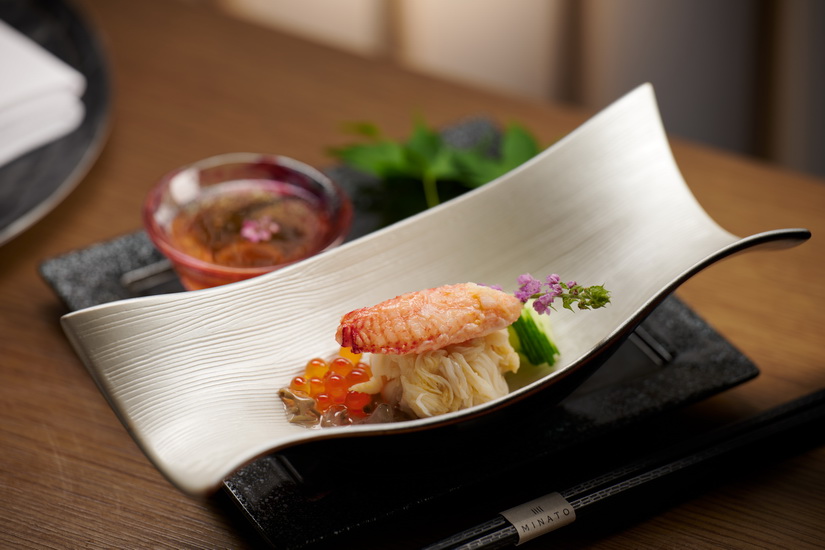 這次晚宴每晚僅設兩場,每場只限10位賓客,於MINATO壽司吧貴賓房內供應。空間私密,座位與師傅距離貼近,讓賓客可近距離欣賞料理製作過程。整體節奏流暢、氣氛恬靜,配合精選清酒與主廚席前解說,令整體體驗更顯完整。