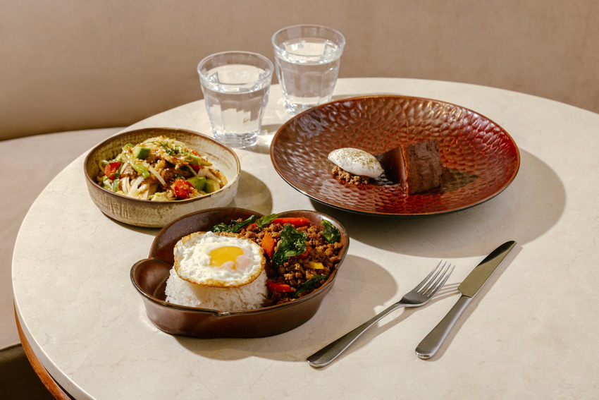 除了單點菜式,餐廳亦推出三道菜午市套餐,每位港幣328元,適合商務午餐或與朋友聚餐。餐廳同時設有兩間私人包廂,空間設計延續金普頓酒店 Kimpton Tsim Sha Tsui Hong Kong 的風格,以簡潔線條與溫暖色調營造舒適用餐氣氛。