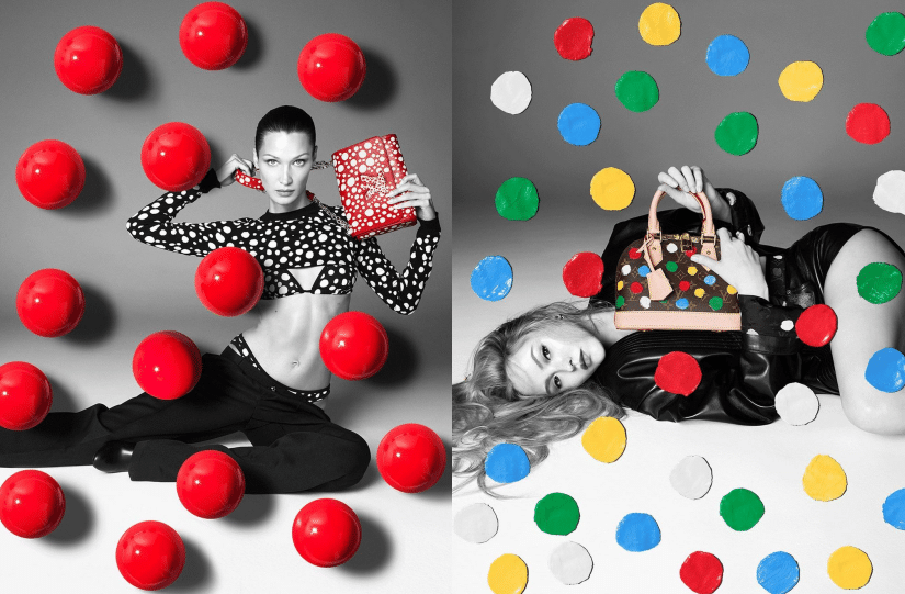 相隔 10 年,Louis Vuitton 再度與 93歲舉世知名的日本當代藝術家草間彌生合作推出第二個聯乘系列,特別邀來多位著名模特兒拍攝短片,包括 Bella Hadid、Ella Hadid、Gisele Bündchen、孫菲菲、戴文青木等,以玩味動態的方式作呈現草間彌生標誌性的圓點圖案。
