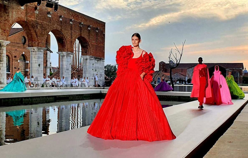 在藝術文化背景濃厚的威尼斯舉行大秀,Pierpaolo Piccioli 同樣也把藝術文化注入 Valentino 2021/22 Fall Haute Couture 設計當中。
